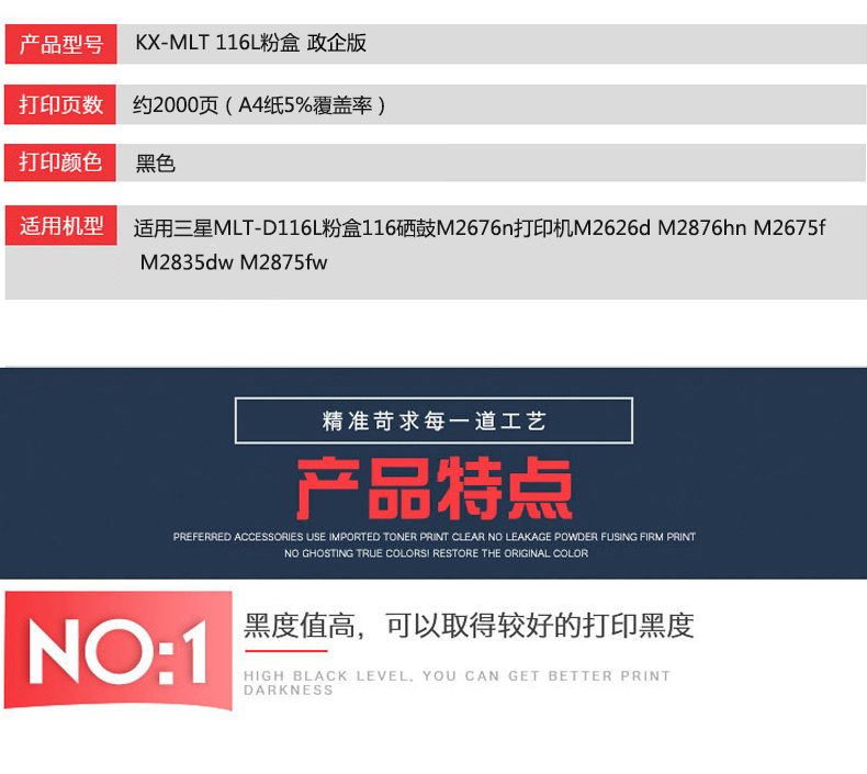 凱欣KX-MLT 116L 適用三星MLT-D116L粉盒116硒鼓M2676n打印機M2626d M2876hn M2675f M2835dw M2875fw M2825dw M2826nd 全國統(tǒng)一價:295元